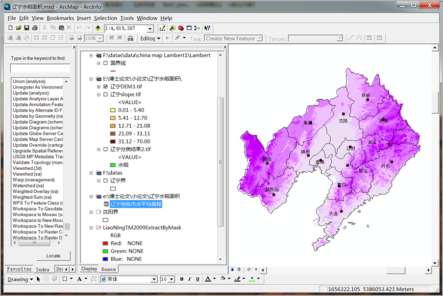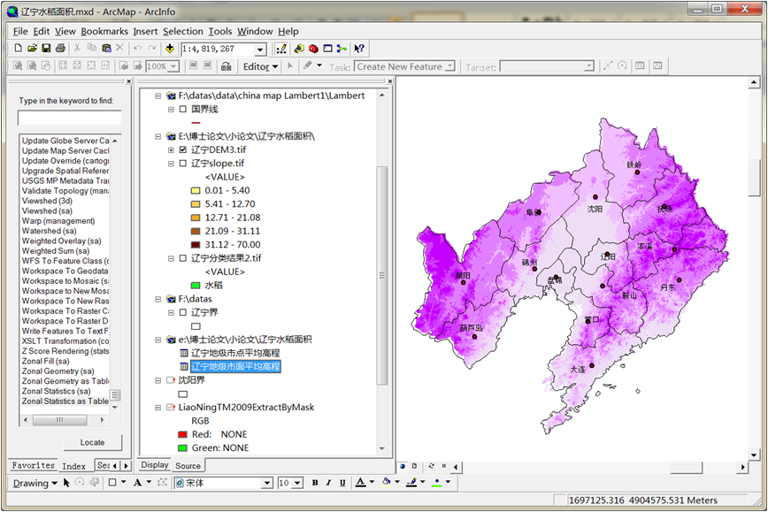 矢量数据与栅格数据的叠加分析,实现简单的矢量数据与栅格数据的属性表链接。采用矢量要素数据统计对应的栅格DN值。主要采用Zonal statistics工具进行。